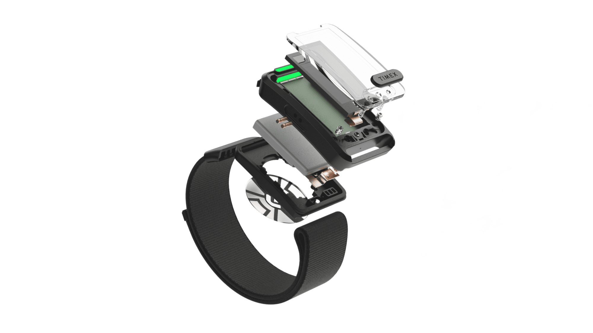 Skin surface electrodes at the wrist detect small electrical signals from the brain as they travel through muscles and nerves.